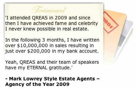 If you’ve never been to a QREAS event before, make sure you click on the ‘What You’ve Said’ link above and see for yourself the quality of the training that QREAS provides, and at the cost we are putting this event on for, there is absolutely no excuse for you not to attend, and subsequently thrive, in this changing market.